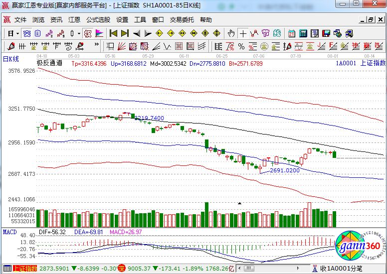 滬指跌1.81%,報(bào)2824點(diǎn);深成指跌1.89%,報(bào)9005點(diǎn);創(chuàng)業(yè)板指跌1.24%,報(bào)1542點(diǎn)。盤面上看,上海自貿(mào)港、航運(yùn)等少數(shù)板塊上漲;深圳國資改革、鋼鐵、軍工、水泥、化工新材料、煤炭等板塊跌幅居前。滬股通凈流入5.6億,深股通凈流入5.5億。相應(yīng)的極反通道指標(biāo)的支撐壓力提示,如下圖所示: